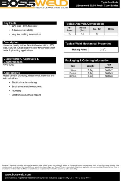 • 1.6mm 50/50 Resin Core Solder – 500g