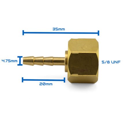 5/8 UNF Brass Barb Fitting 5mm Hose Nut Regulator
