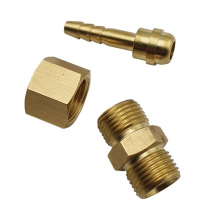 Industrial brass barb fitting designed for CO2, brewing gases, and inert gas regulators/flow meters. Connects 5mm welding/brewing hose, ensuring reliable daily use in industrial settings.Product Parameters