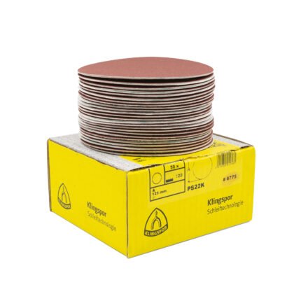 Klingspor PS 22 K sanding discs with Velcro backing for quick tool change. Ideal for wood and metal surfaces, featuring aluminium oxide grain for outstanding results and long service life. No dust holes, made in Poland. Suitable for both hobby and professional use.