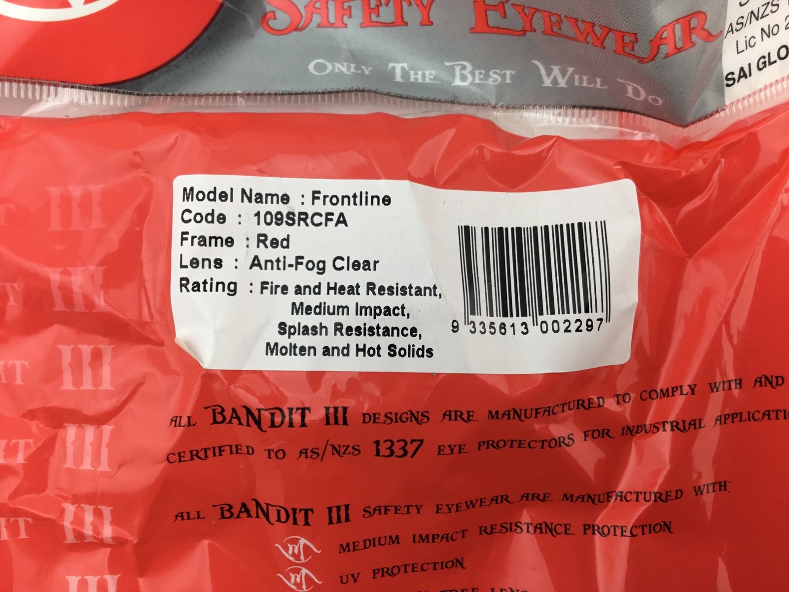 Hampdon Industrial Bandit III Brand Frontline Safety Goggles. These Frontline Safety Goggles are designed for people who require Fire rated and High Temperature resistant goggles. They feature medium impact anti-fog lenses, Cushion Seal, Hot Solids and Molten Metal Resistance, Splash Resistant, adjustable head strap and wide clear visibility. Can be worn over glasses.