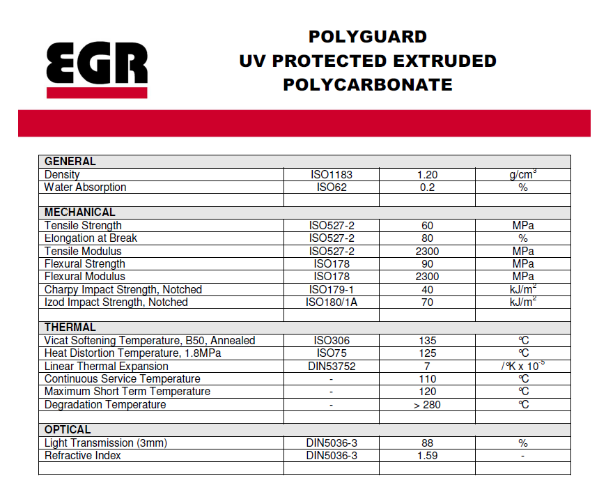 Made from certified EGR premium polycarbonate. (Please see the specification sheet in the pictures)