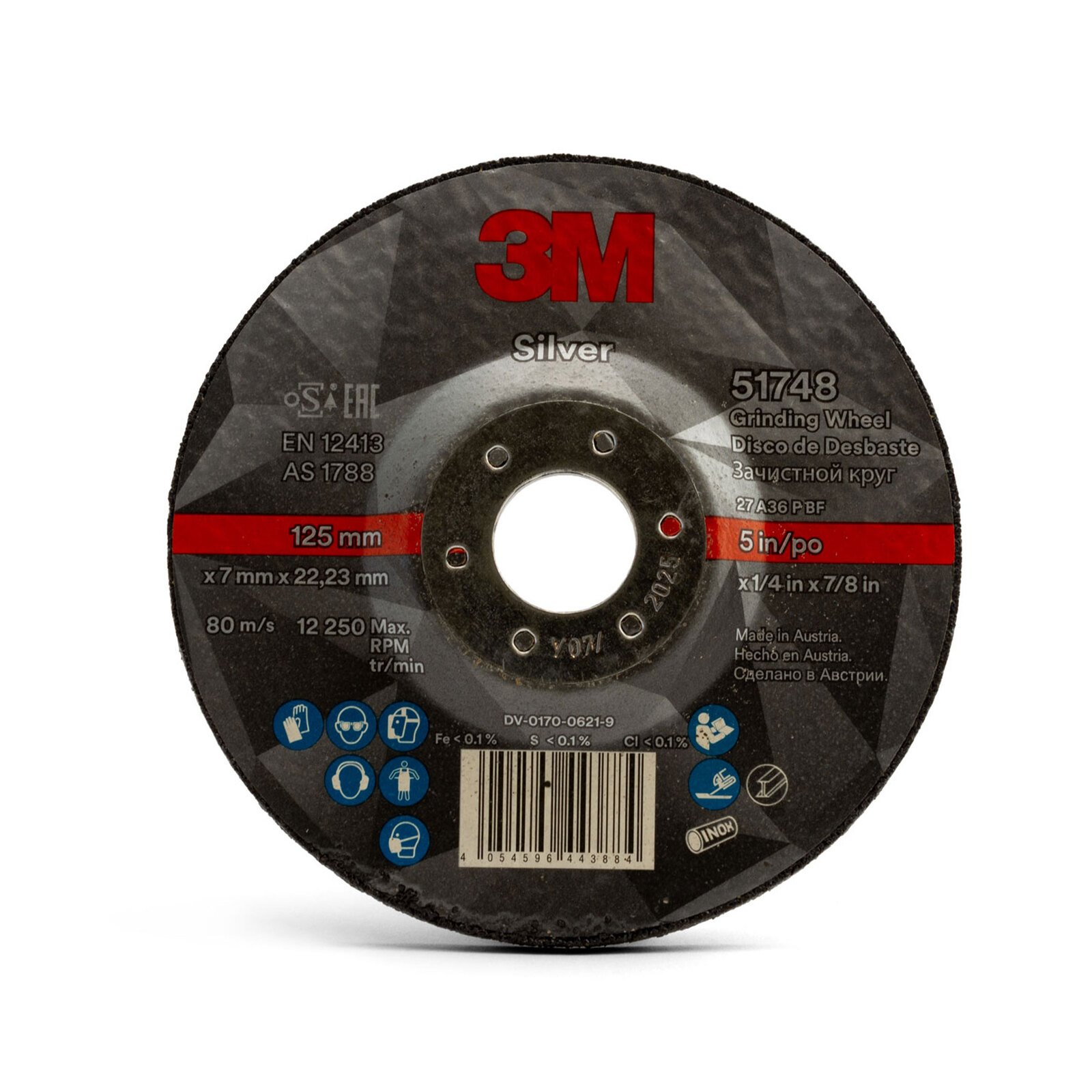 3M (51748) 125mmm x 7mm x 22.23mm Silver Rigid Grinding Disc