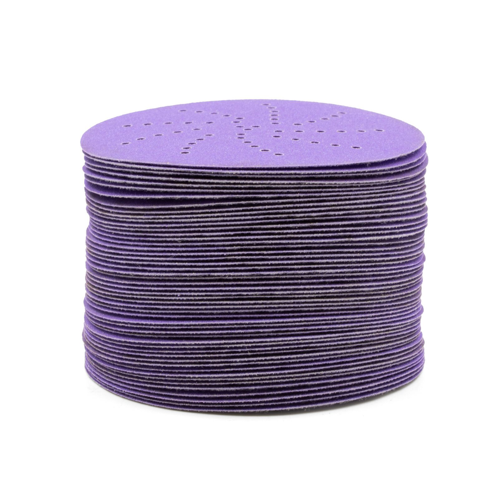 Shape rough body filler, remove paint and create fine feather-edging with 3M™ Cubitron™ II Hookit™ Purple+ Multihole Abrasive Disc 737U. Our triangular shaped grain and multi-hole pattern abrasive disc can also be used for the final prep before blending or priming. It gives a superior cut, 30% faster than other premium abrasives, and long disc life during key stages in auto body repair. The surface of the abrasive disc has our Precision-Shaped Grain technology. It’s made from sharp triangular shaped electrostatically oriented grains. Each grain works as an individual cutting tool to slice through paint and body filler. The multi-hole pattern on our abrasive disc offers excellent dust extraction increasing cut rate and disc life. The back of the abrasive disc has our Hookit™ technology. A hook-and-loop system for work spaces where adhesive backed discs may become spoiled by dust, dirt, or flying debris. Hookit™ sanding discs attach to a hook‐and‐loop backup disc pad (sold separately) on a random orbital sander, can be removed cleanly and easily, and can be re‐used again and again for the extent of the abrasive life.