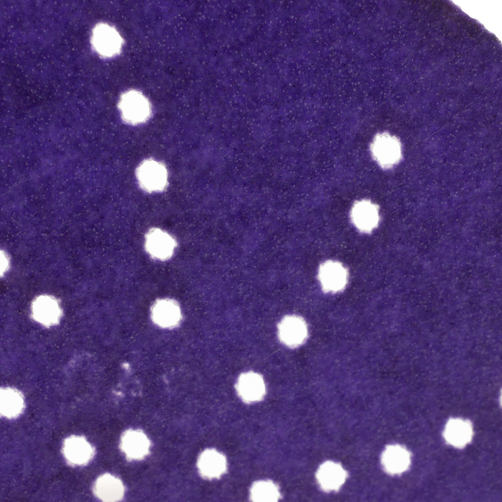 Shape rough body filler, remove paint and create fine feather-edging with 3M™ Cubitron™ II Hookit™ Purple+ Multihole Abrasive Disc 737U. Our triangular shaped grain and multi-hole pattern abrasive disc can also be used for the final prep before blending or priming. It gives a superior cut, 30% faster than other premium abrasives, and long disc life during key stages in auto body repair. The surface of the abrasive disc has our Precision-Shaped Grain technology. It’s made from sharp triangular shaped electrostatically oriented grains. Each grain works as an individual cutting tool to slice through paint and body filler. The multi-hole pattern on our abrasive disc offers excellent dust extraction increasing cut rate and disc life. The back of the abrasive disc has our Hookit™ technology. A hook-and-loop system for work spaces where adhesive backed discs may become spoiled by dust, dirt, or flying debris. Hookit™ sanding discs attach to a hook‐and‐loop backup disc pad (sold separately) on a random orbital sander, can be removed cleanly and easily, and can be re‐used again and again for the extent of the abrasive life.