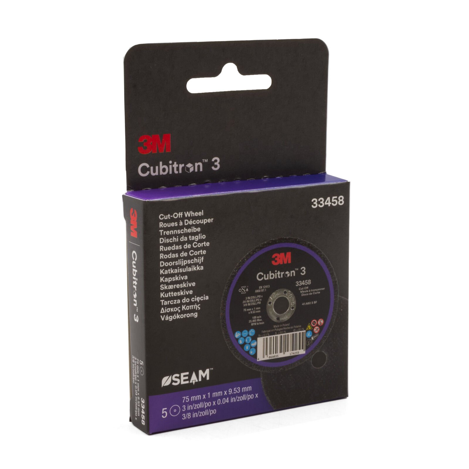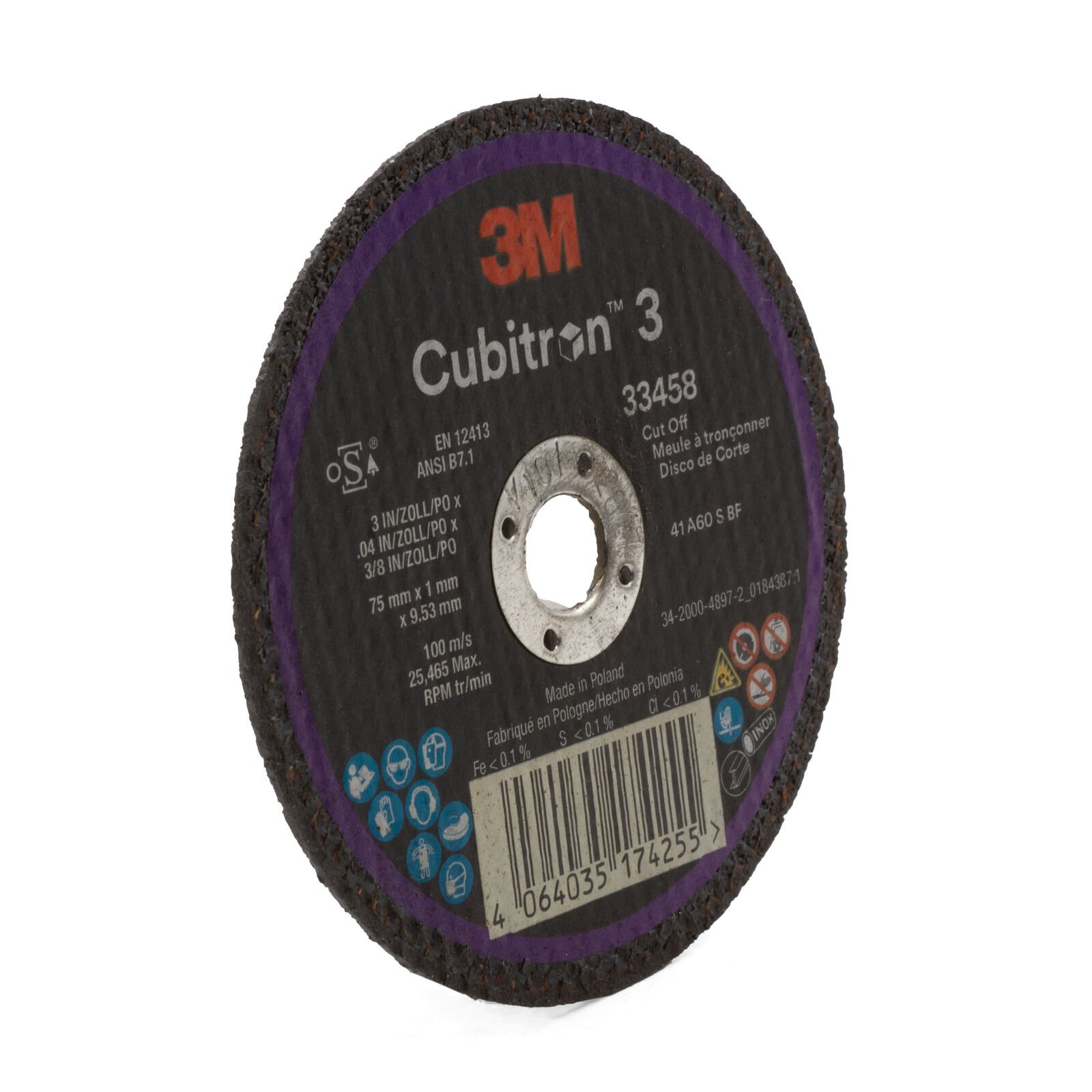 3M Cubitron 3 Cut-off Wheel 33458 75mm x 1.0mm x 9.53mm – 10 Each