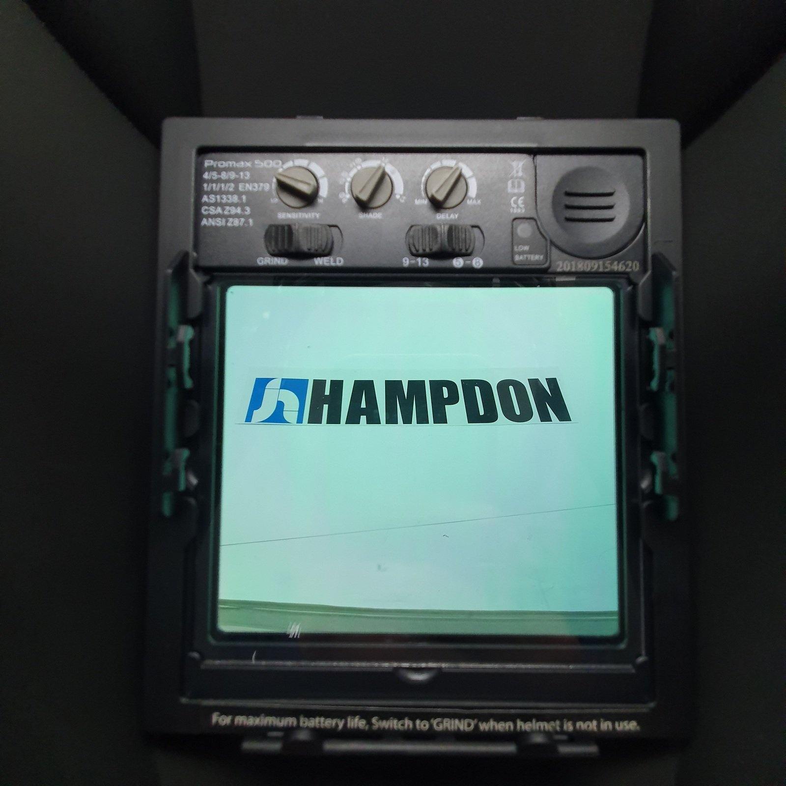 Super size viewing area & more value than you can poke a MIG, TIG or Stick at! PROMAX 500 stand-out features include; Massive 98x87mm Viewing area, 4 senors for reliable switching, Dual Shade 5-8/9-13, Sensitivity & Delay Adjustments, Grind-Mode switch, Replaceable Battery, Magnification Lens Holder & more. Comfortable, lightweight & superior optics.