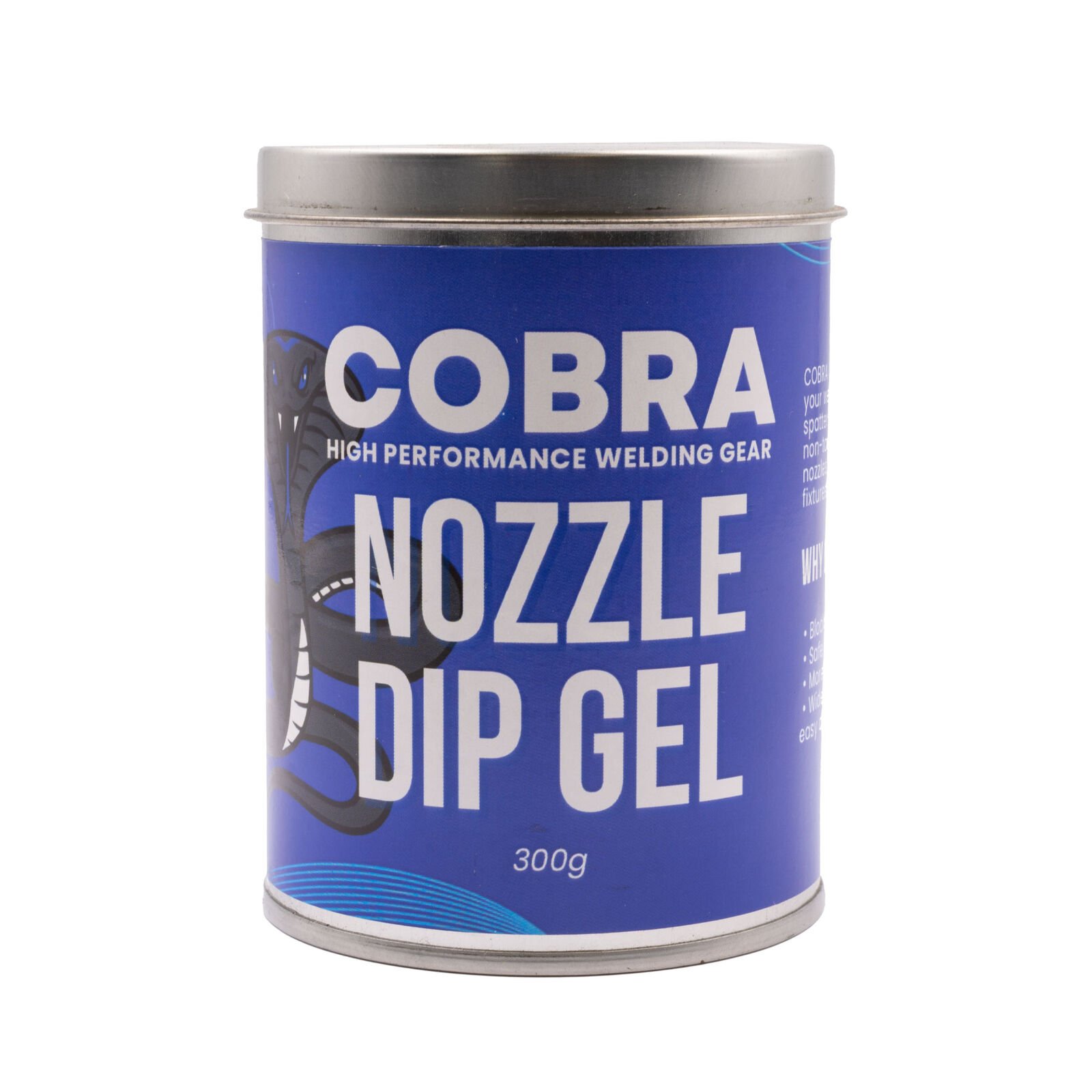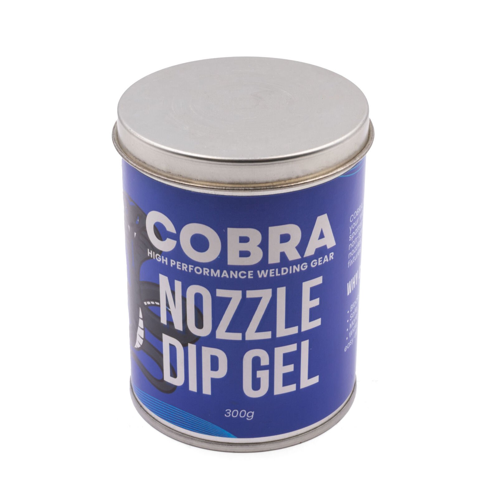 The COBRA 300g MIG Nozzle Dip is an advanced non-toxic gel dip for the prevention of spatter adhering to sensitive components in welding torches. This includes the interior and exterior of MIG nozzles, the end and outer surfaces of contact tips, positioners and fixtures.