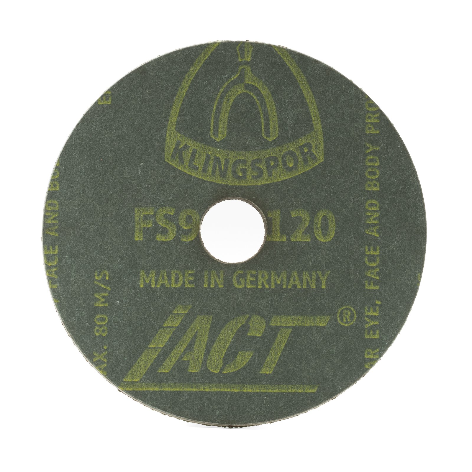 High-quality 100mm Ceramic Resin Fibre Sanding Discs, 120 Grit, ideal for stainless steel grinding. Self-sharpening ceramic alumina ensures long service life and aggressive performance, made in Germany.