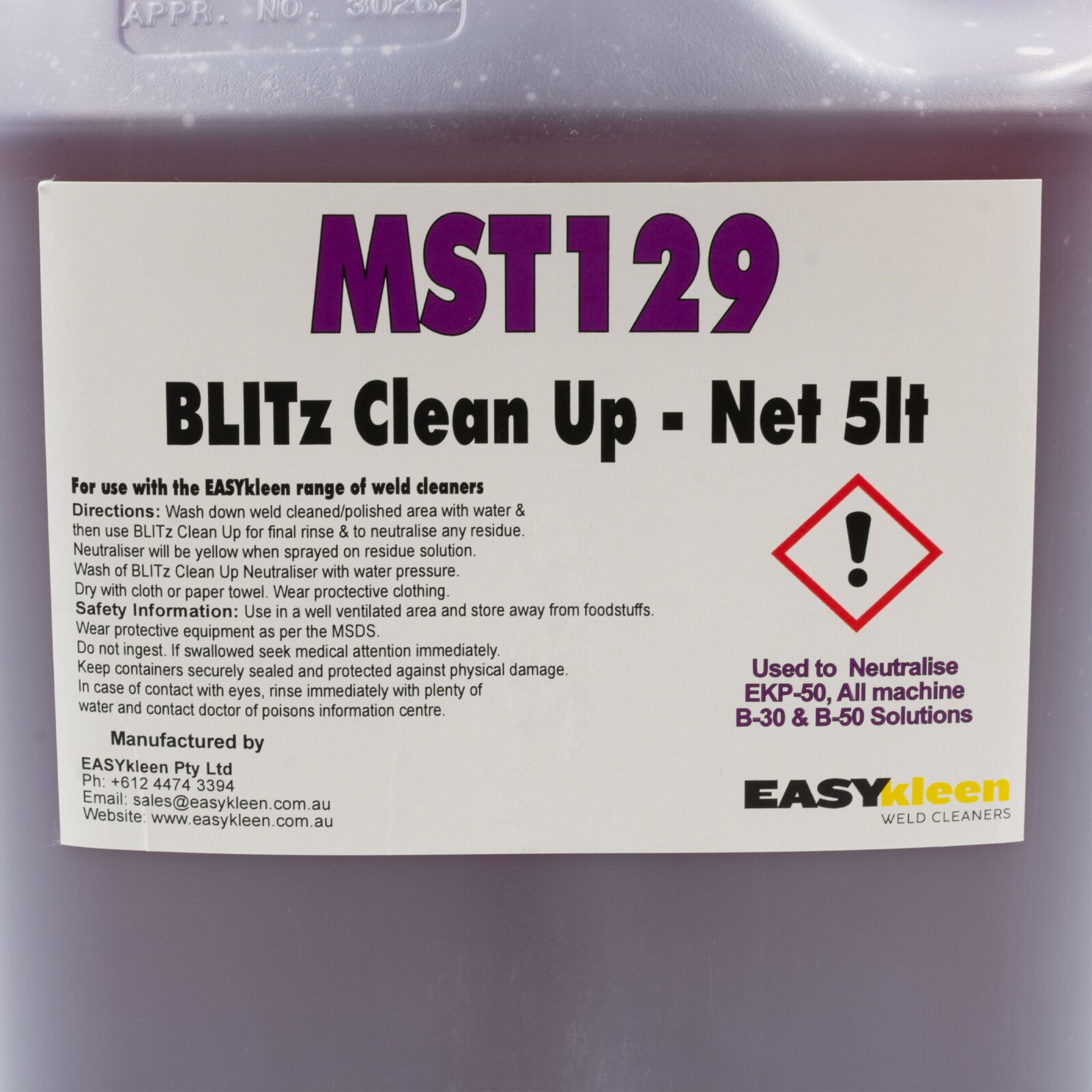 The BLITz Clean Up neutraliser can be used after B-50, EKP-50 & all machine weld cleaning solutions. With an inbuilt pH indicator, this neutraliser is essential if you want to make sure that all acidic residue has been completely removed from your workpiece.