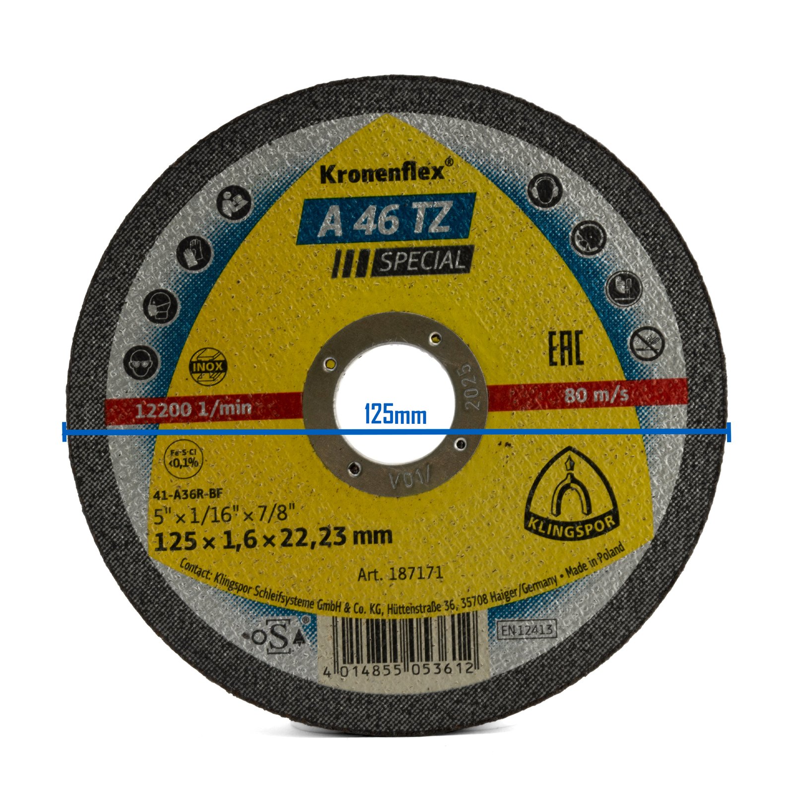 Klingspor 125mm x 1.6mm x 22.23mm Cutting Disc Inox A 46 TZ – 1 Each