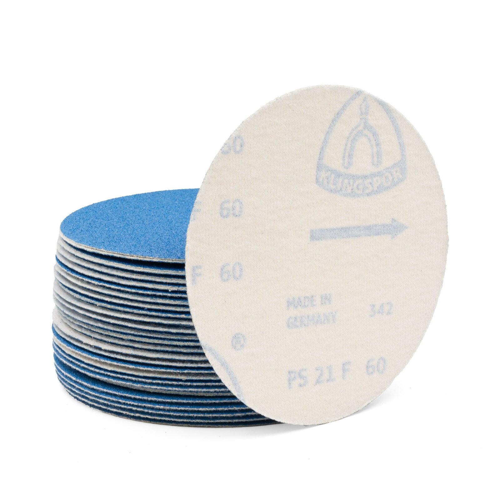 High-performance Klingspor PS 21 FK sanding discs, ideal for wood and metal surface treatment. Made in Germany with self-sharpening zirconia alumina for aggressive cutting and long service life. Quick tool change via velcro backing ensures efficient workflow, suitable for both professionals and hobbyists.