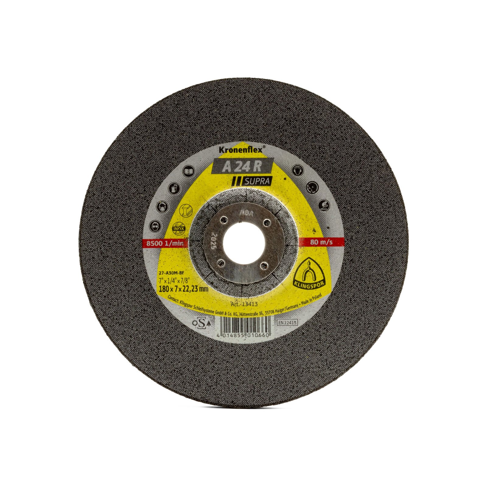 Klingspor 7″ 180mm x 7mm x 22.23mm Grinding Disc Inox A 24 R Supra – 10 Each