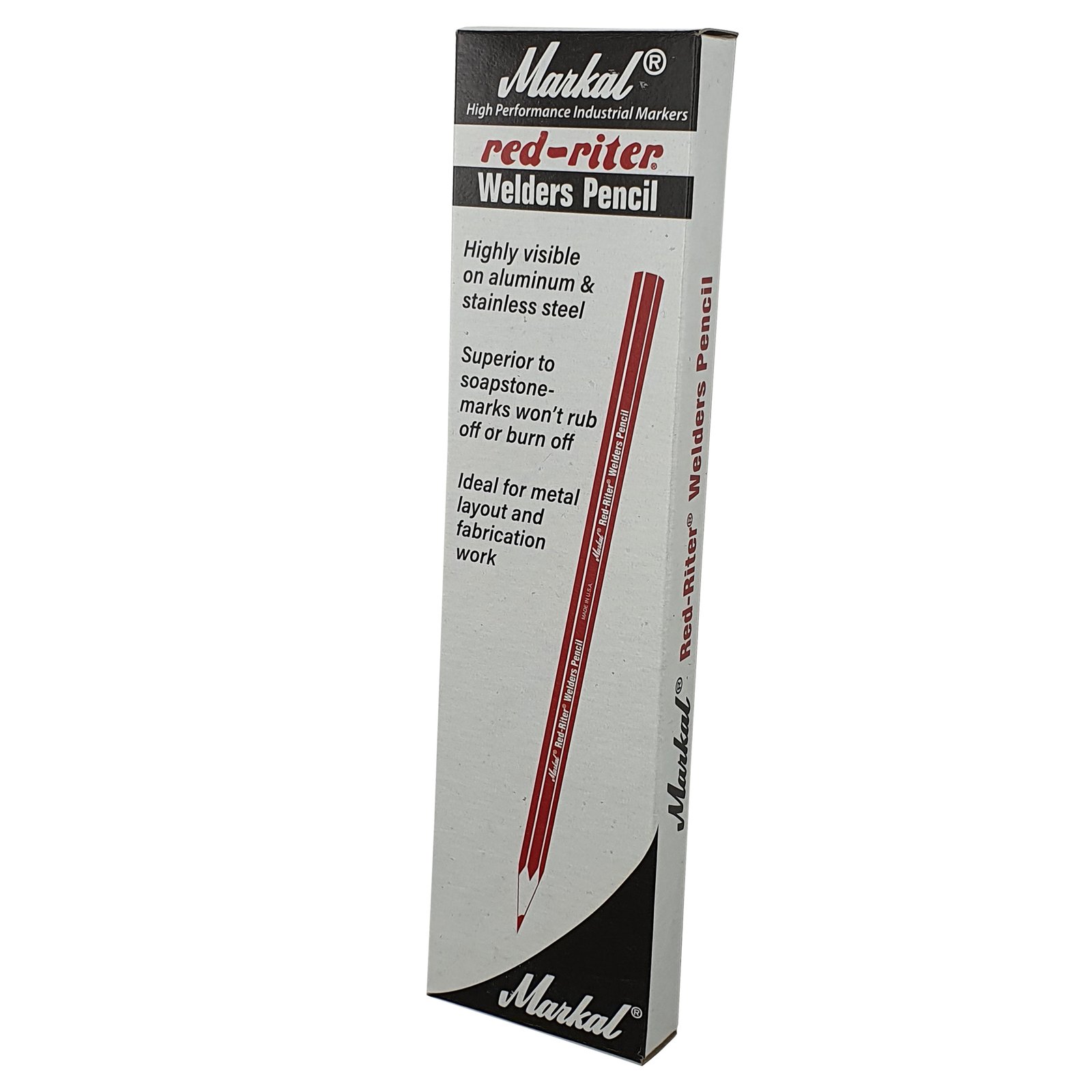 Economical, high-strength pencil is ideal for marking all types of metal surfaces – even oily, rusty or wet surfaces.