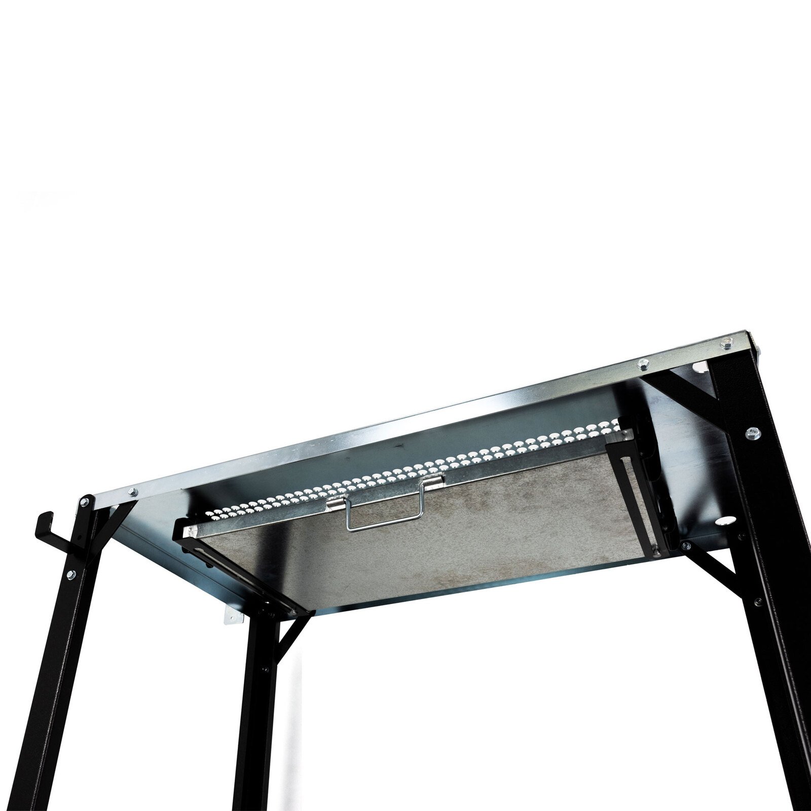 Pull out draw underneath for easy cleaning of spatter and slag and holes in the top aid for easy clamping of the workpiece.